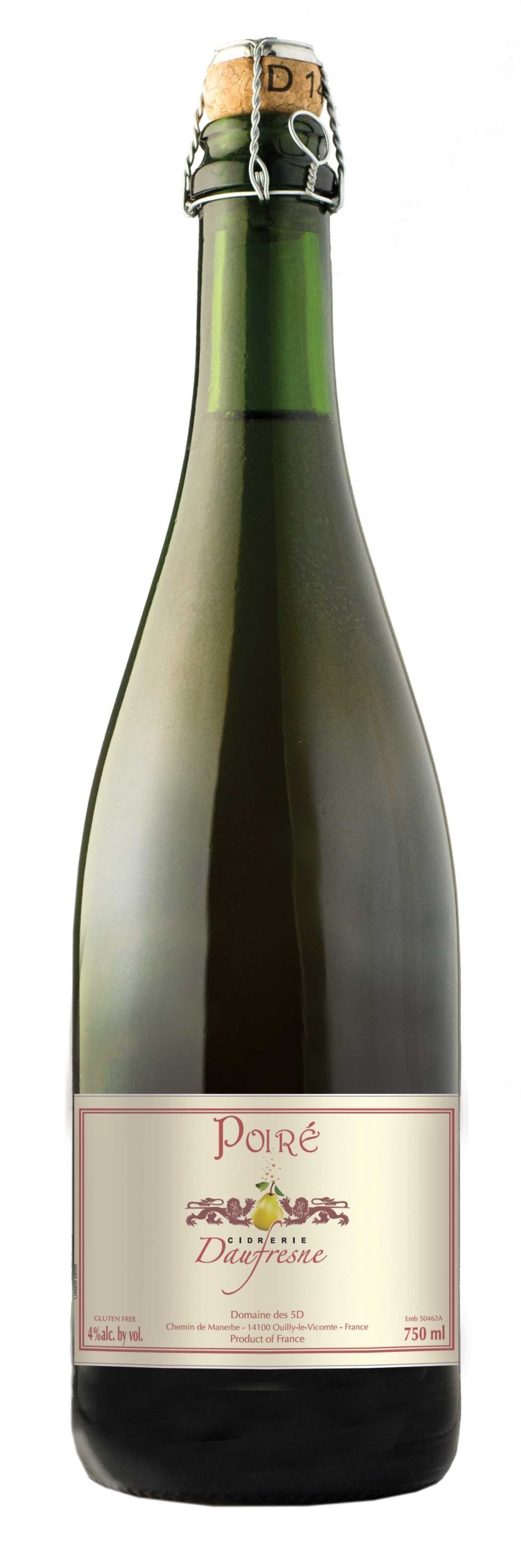 A perry pear is gritty, tannic and acidic, which makes it somewhat similar to a cider apple. But that is where the similarities end. Perry pear tannins tend to be rounder than those found in cider apples, and the pears used for perry have less malic acid than cider apples, resulting in a beverage that is less tart and more delicate. The Daufresne Poiré offers clear, sparkling and persistent effervescence and aromas. Tastes of fresh pear fruit, hints of melon and citrus, natural sediments in glass, rustic with a clean pure sweetness, balanced by refreshing acidity.